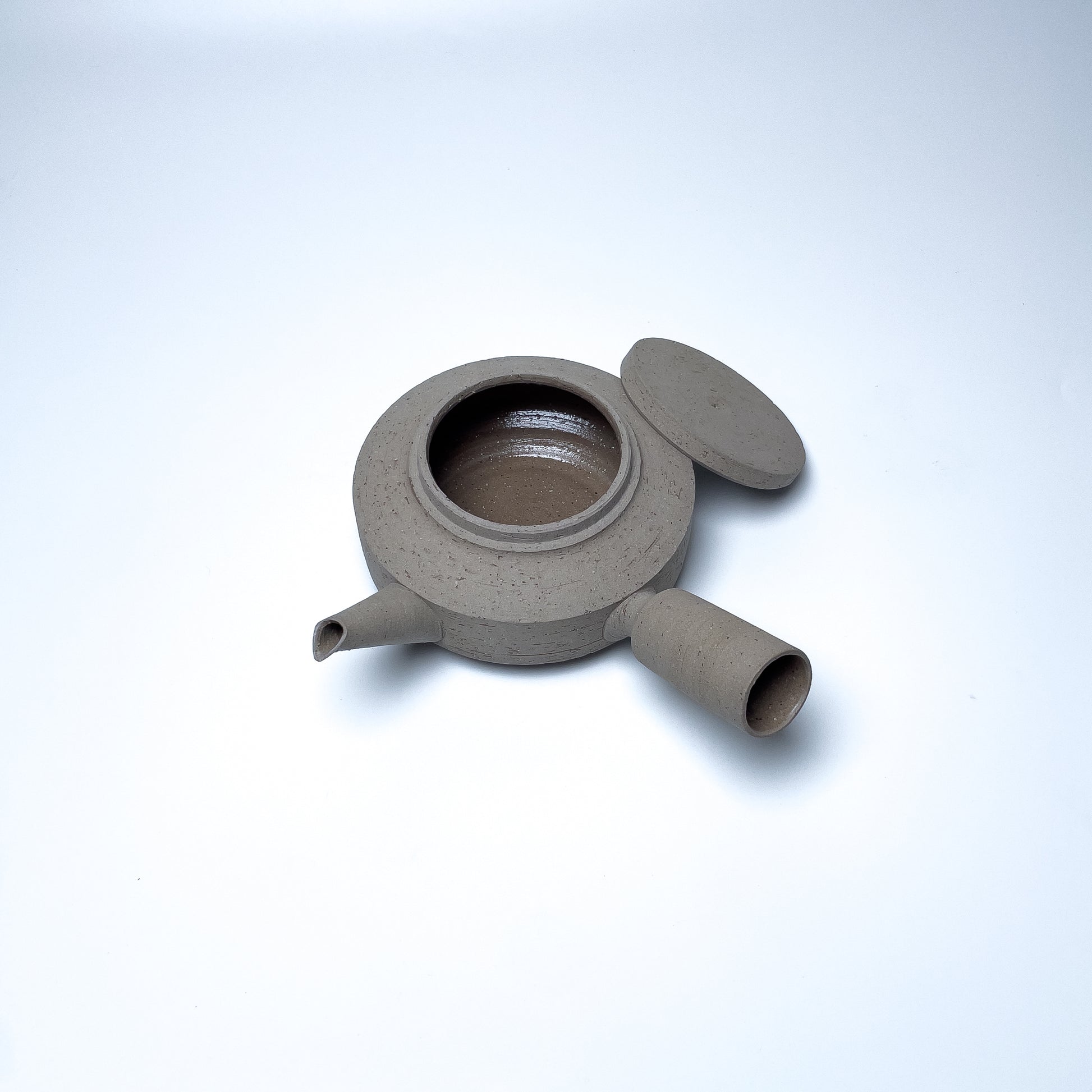 Enjoy the feeling of earth in your hands. The raw, unglazed exterior of this Kyusu tea set allows the craftsman's mastery to shine undistracted. The angles achieved on these wheel-thrown pieces are awe-inspiring.